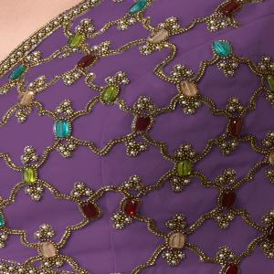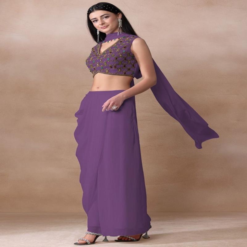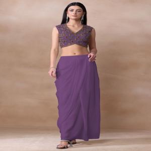 Bright Purple Bead Embellished Georgette Draped Skirt Set - MTF00645