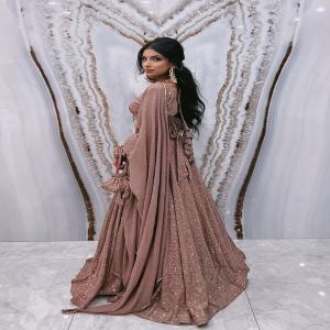Pink Rosy Brown Sequin Embroidered Georgette Lehenga Set - XLH11975
