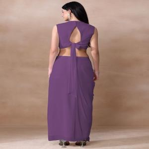Bright Purple Bead Embellished Georgette Draped Skirt Set - MTF00645