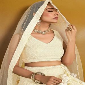Off White Embroidered Georgette Lehenga Set With Dupatta - XLH50279